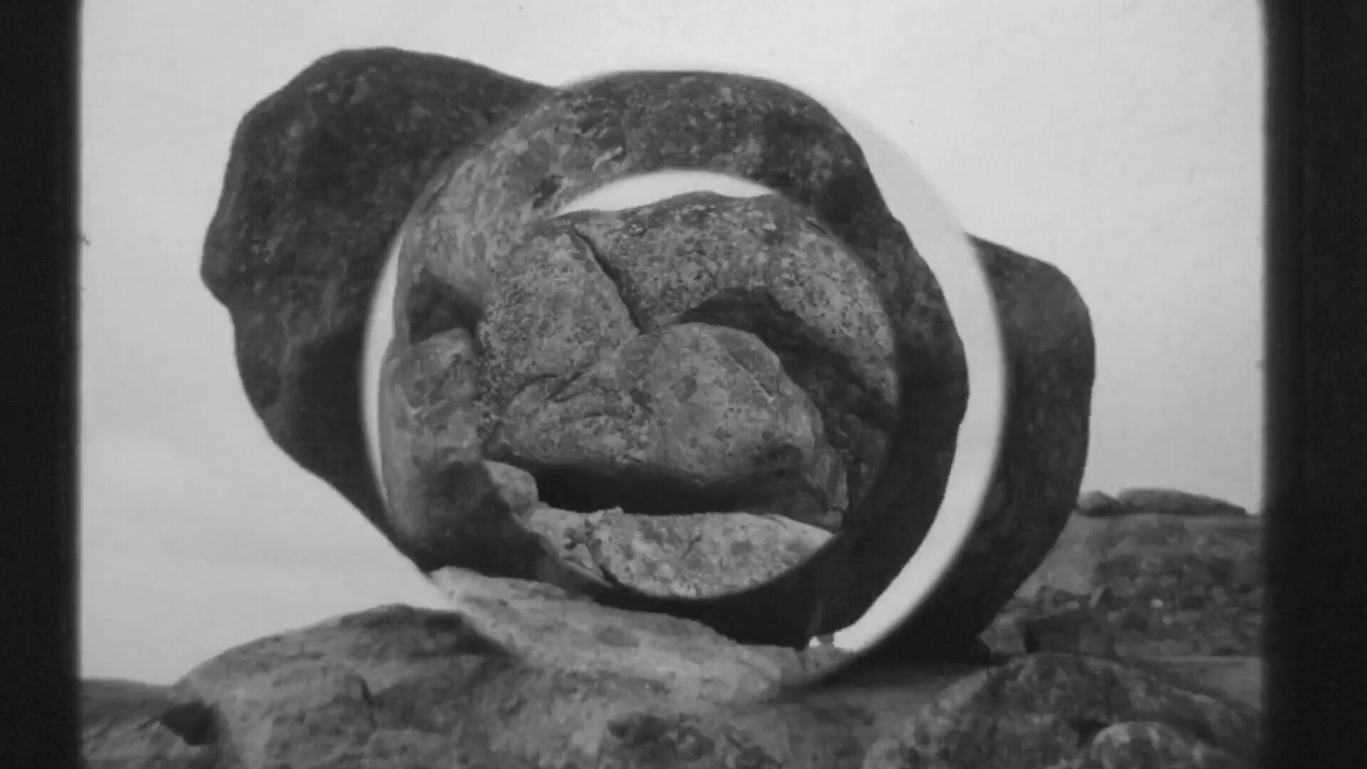 In a world awash with digital imagery, it is refreshing to see worn-out, poor-quality images. They are more tactile and exhibit their own unique personalities. Ursula Wood’s Relâche (2025) is influenced by the 1924 film Entr’acte by René Clair (with entr’acte translating to intermission). Wood takes us back to early surrealist cinema, where jump-cuts and montage reflects Paris in post-war disarray. At its emergence as a new art form in the early twentieth century, Kiev-born avant-garde artist Kazimir Malevich argued that cinema must develop its own formal language rooted in a kinetic relationship to movement, rhythm, and speed. AFW’s films mark an attempt at continuing to develop this language, demonstrating a use of kinetic processes to construct the narrative, beyond the limits of the teleological narratives of feature films. Paddy Hay’s Upfield (2025), for instance, jarringly splices split-second shots of Melbourne CBD skyrises with suburbia, producing a mechanistic vibration that’s felt as much as it’s seen as he walks the Upfield train line. Similarly, Richard Tuohy’s Tooborac (2025) is almost nauseating for viewers in the cinema, driven as it is by a perpetual circular motion that rapidly rotates around gigantic granite boulders.