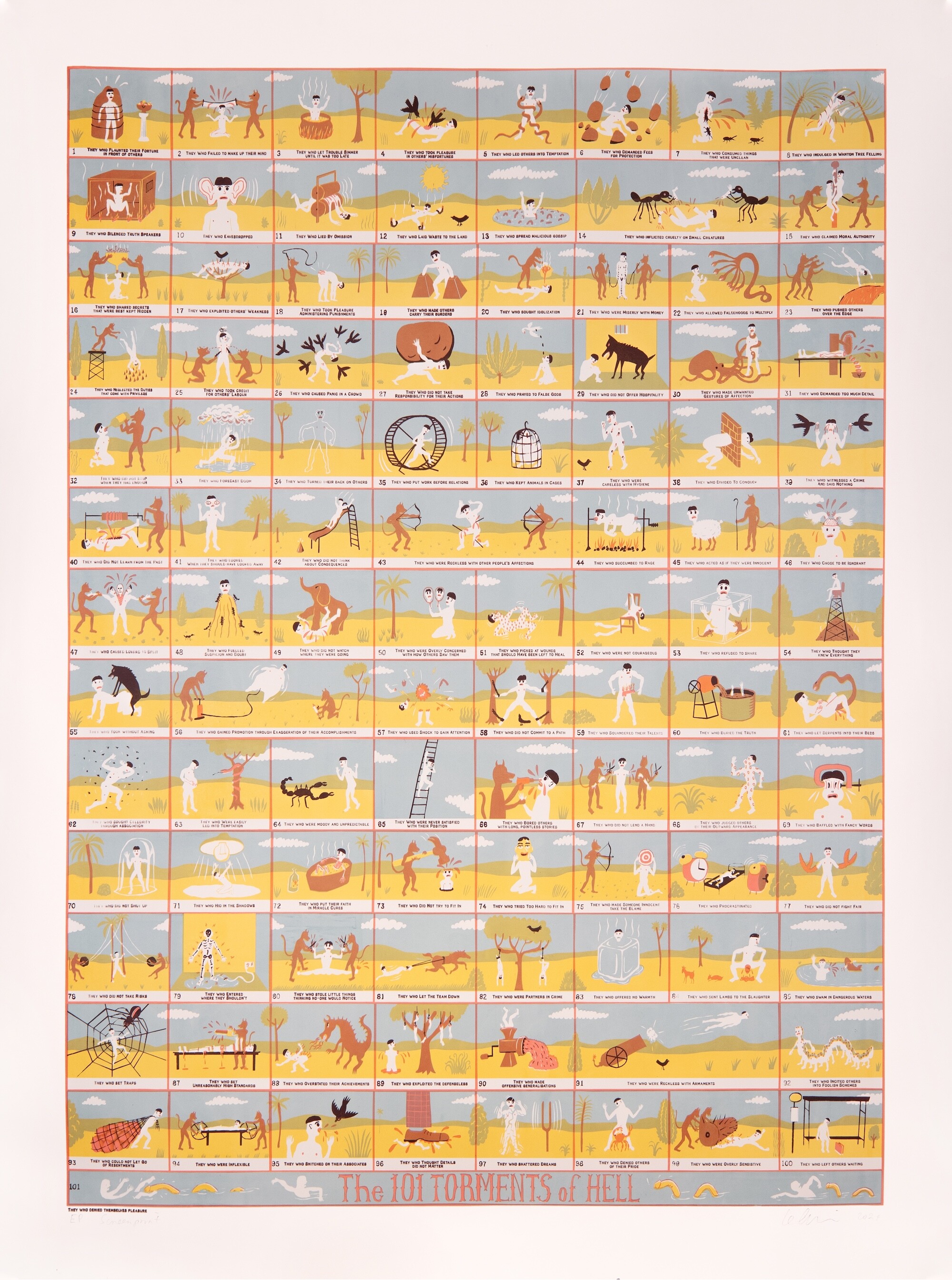 Malcolm Le Smith in collaboration with Krack Studio, 101 Torments of Hell, 2024, screenprint on 100% cotton Clairefontaine paper, 200 x 150cm; edition of 4 + 2AP. Photo: Fajar Riyanto.